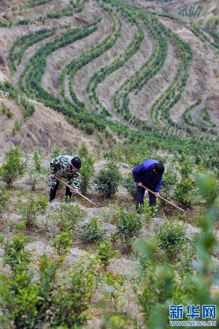 村民在茶葉基地除草。新華網發 鄧龍華攝