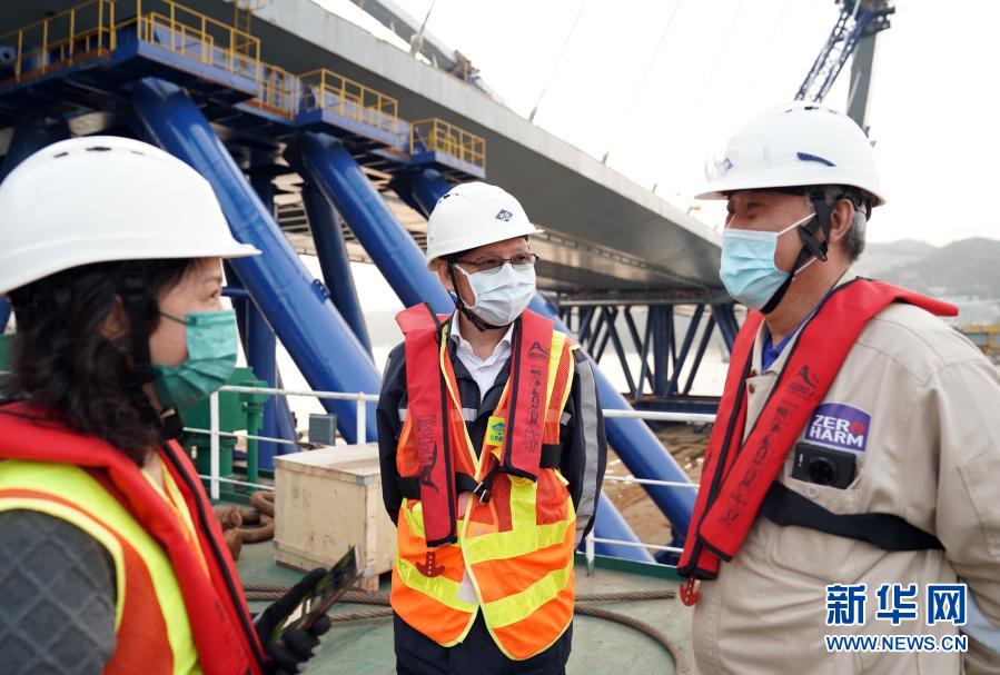 特區(qū)行政長官林鄭月娥于2月25日和特區(qū)政府運輸及房屋局局長陳帆等一同乘船視察了該工程,并與之合影。在當天的個人社交媒體上,她對這一“超巨型的預制組件”鋼橋表示贊賞,對工程的諸多創(chuàng)新表達期待。