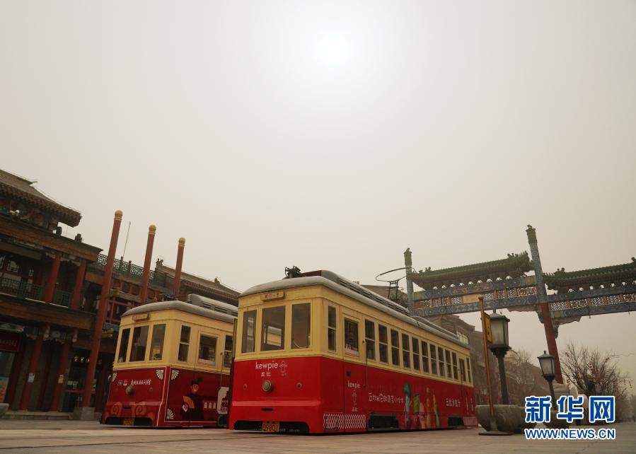 3月15日拍攝的北京前門商業街。當日,我國北方多地出現沙塵天氣。新華社記者 張晨霖 攝