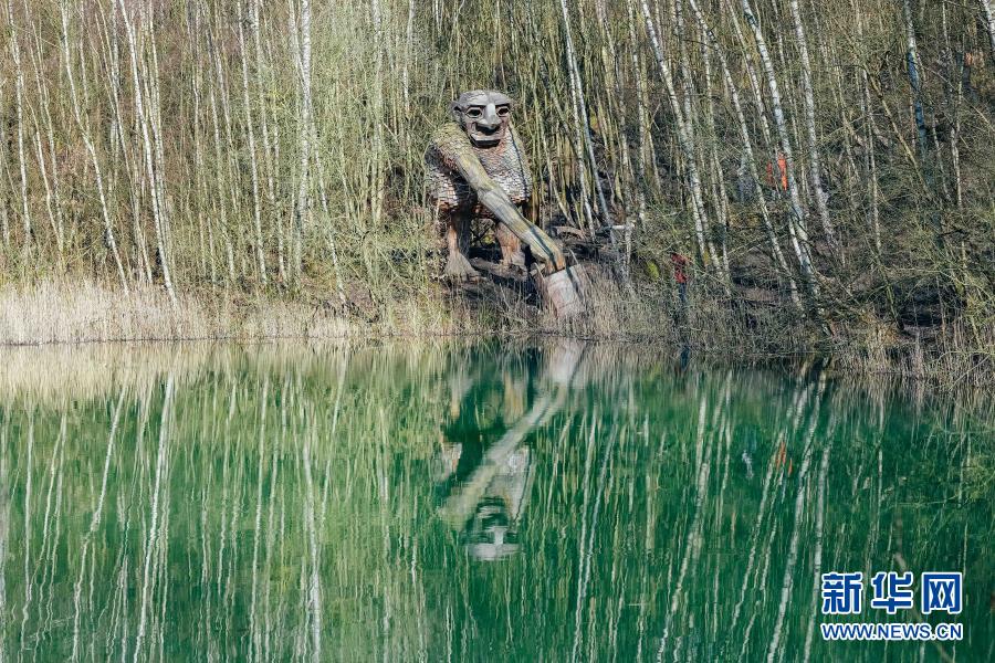 這是3月20日在比利時(shí)博姆市的德舒爾森林公園拍攝的一座“巨人”雕塑。新華社記者 張鋮 攝