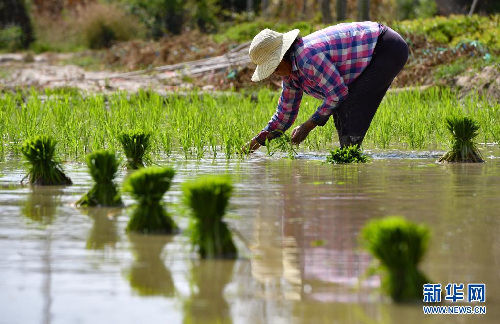 4月5日,海南省陵水黎族自治縣光坡鎮的農民在插秧。