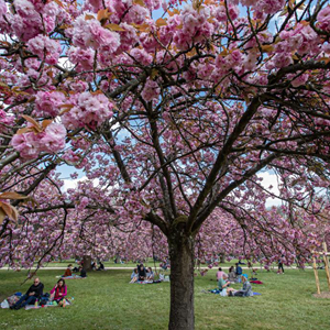 4月20日,人們在法國巴黎近郊的國璽公園欣賞櫻花。