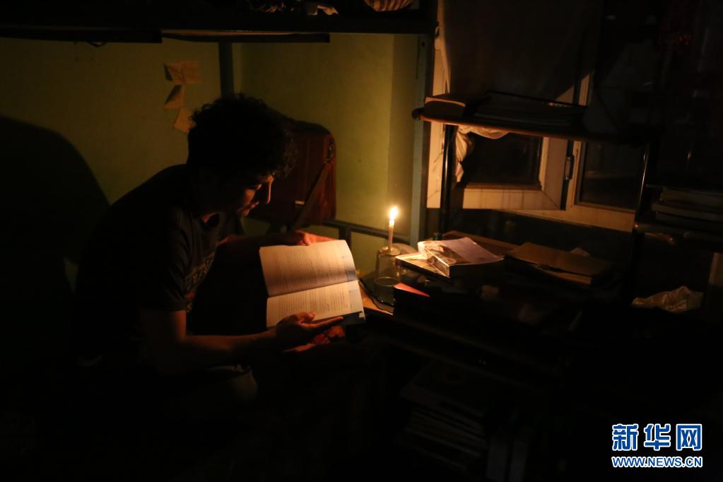 這是2019年9月17日,在阿富汗首都喀布爾,一名學(xué)生在宿舍里點(diǎn)起蠟燭看書。