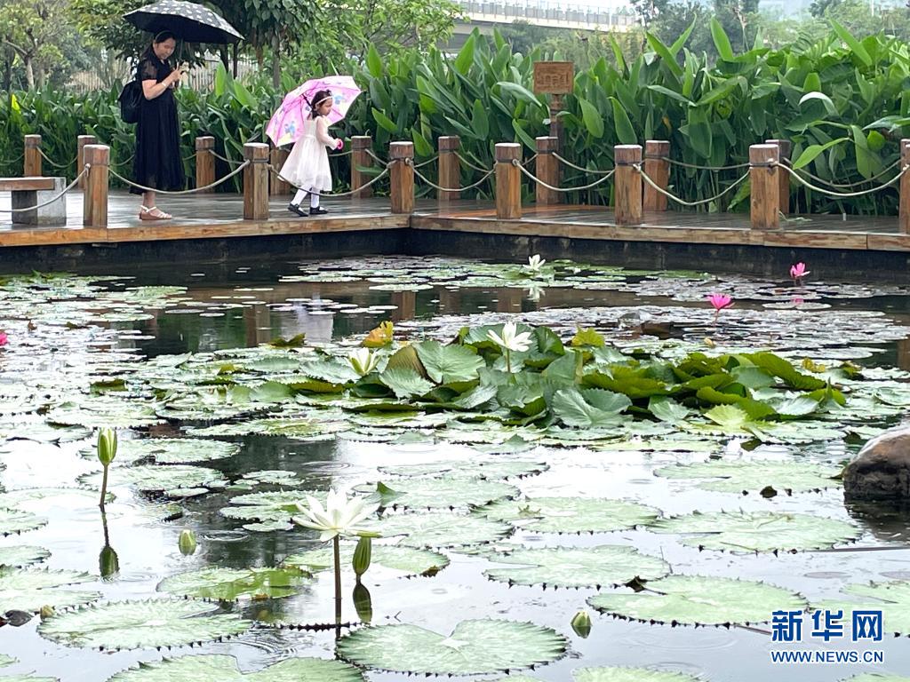 立夏時節,廣西南寧市那考河濕地公園內草木吐翠、鮮花斗艷,一派繁茂景象。