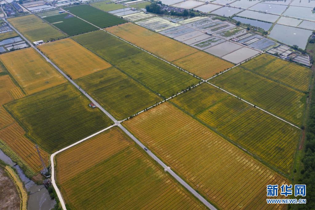 初夏時(shí)節(jié),浙江省湖州市吳興區(qū)東林鎮(zhèn)萬(wàn)畝田野里的金黃的小麥、綠色的桑葉、彩色的花海還有白鷺等野生鳥(niǎo)類(lèi)等構(gòu)成了一幅五彩田園的美麗景色。