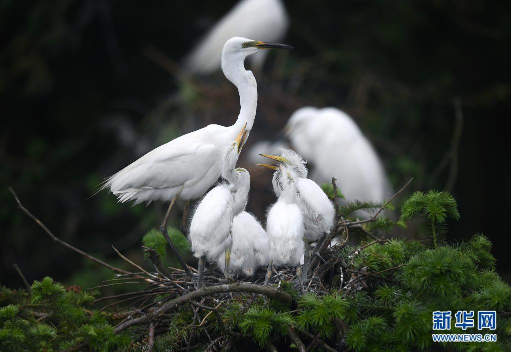 在南昌市新建區象山森林公園內,白鷺和雛鳥們在一起(5月18日攝)。