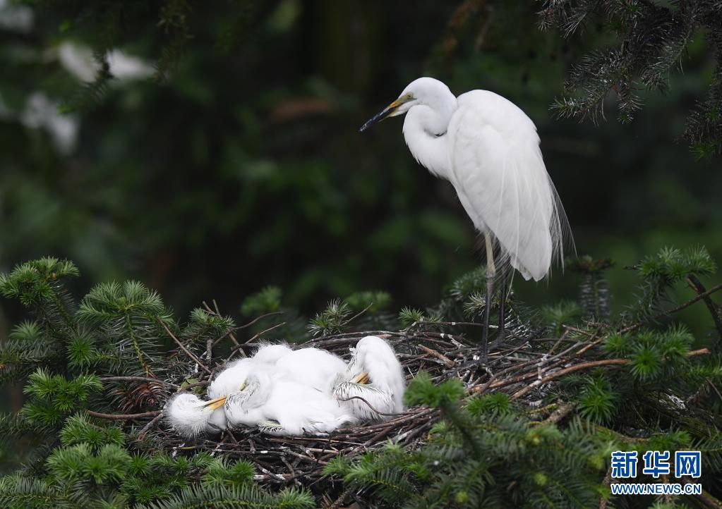 近期,在位于鄱陽湖畔的江西省南昌市新建區象山森林公園內,已安家筑巢的鷺鳥進入孵化哺育旺季。象山森林公園有著“鷺鳥王國”的美譽,每年都會吸引白鷺、蒼鷺、夜鷺等種類的鷺鳥飛抵棲息和繁衍后代。