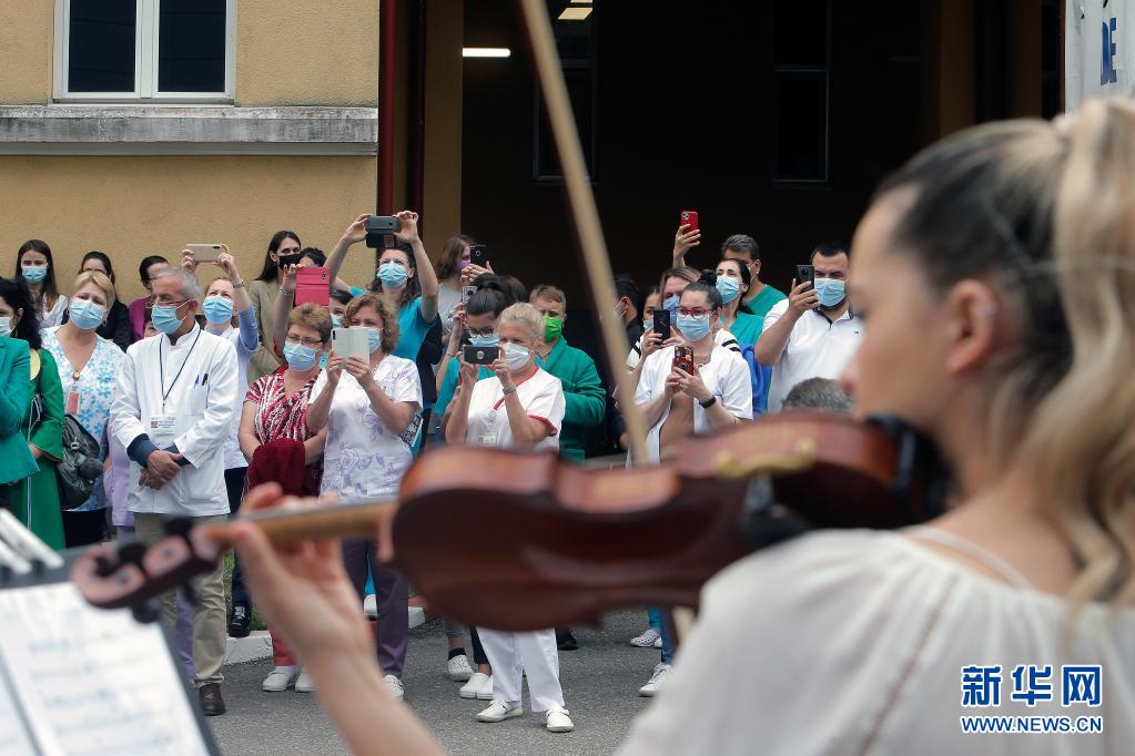 當(dāng)日,羅馬尼亞首都布加勒斯特一個(gè)樂隊(duì)在該國(guó)一家傳染病醫(yī)院——馬太·巴爾什醫(yī)院演出,向抗擊新冠疫情的醫(yī)務(wù)工作者致謝。