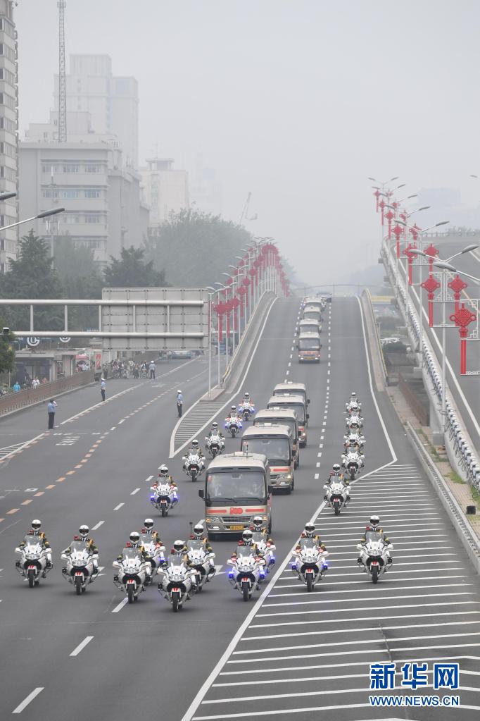 這是“七一勛章”獲得者集體乘坐禮賓車從住地出發(fā),由國賓護(hù)衛(wèi)隊(duì)護(hù)衛(wèi)前往人民大會堂。