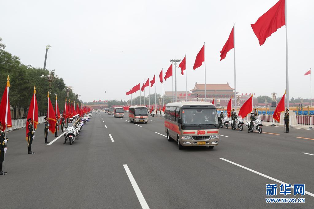 這是“七一勛章”獲得者集體乘坐禮賓車從住地出發(fā),由國賓護(hù)衛(wèi)隊(duì)護(hù)衛(wèi)前往人民大會堂。