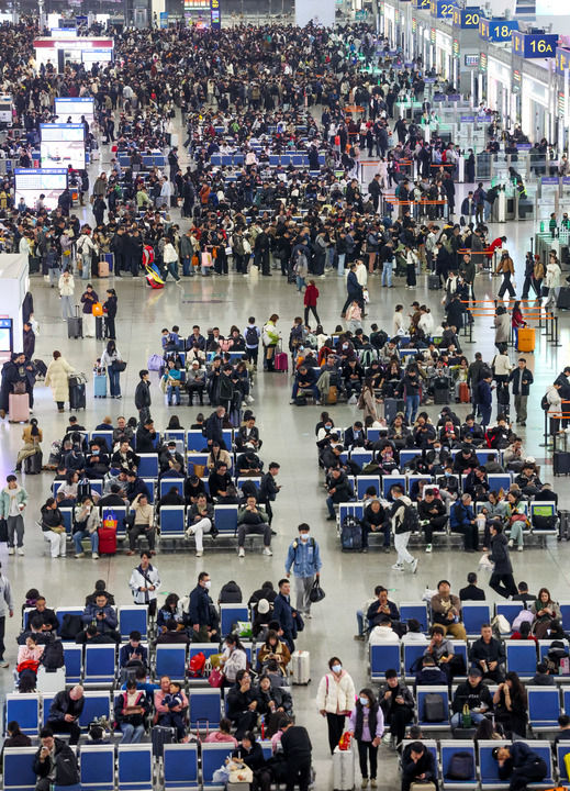11月28日,旅客在上海虹桥火车站候车大厅内候车。新华每日电讯记者 丁汀 摄
