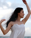 黃圣依赤腳漫步沙灘 飄逸白裙詮釋清新之美
