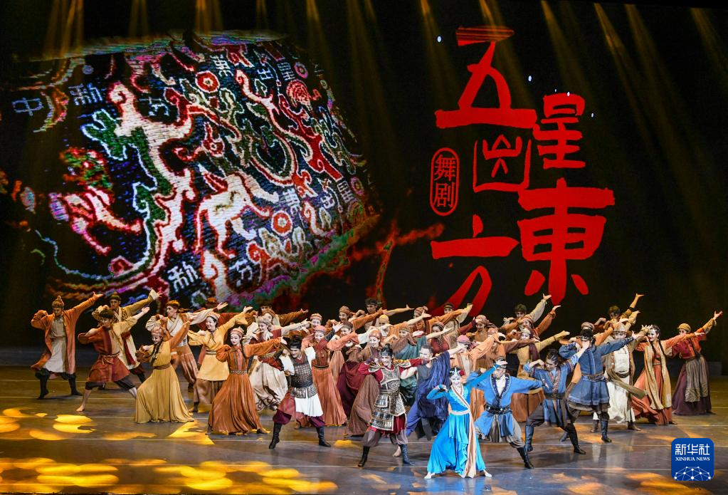 2月28日晚,舞剧《五星出东方》在新疆乌鲁木齐京剧院上演。该舞剧以在新疆和田地区民丰县尼雅遗址出土的“五星出东方利中国”汉代织锦护臂为题材进行创作。该舞剧在乌鲁木齐连演三场之后,将于3月10至19日赴和田地区演出14场。