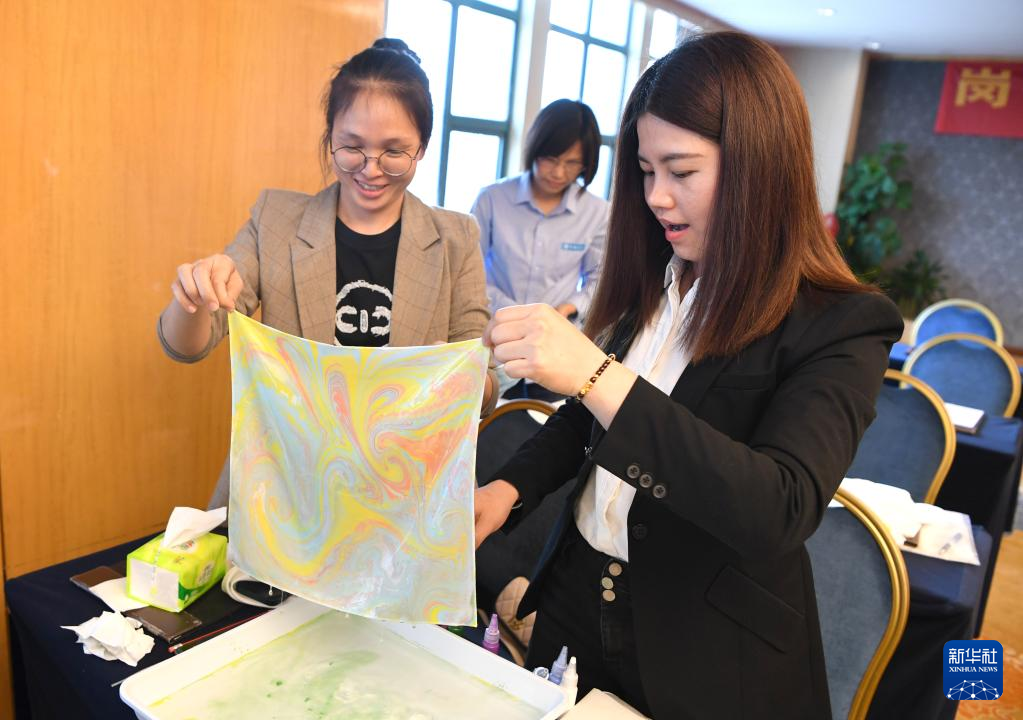 3月4日,中建三局一公司广西分公司在广西南宁市举办“三八”国际妇女节主题活动,数十名奋战在建筑工程一线的女员工在老师的带领下学习水拓画技艺,以独特方式迎接自己的节日。