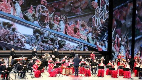 3月23日,“2023非遗品牌大会”在广州市开幕。当晚,“非遗之夜”展演在广州市文化馆新馆群星剧场上演。此节目为广东音乐《赛龙夺锦》。新华网 邢贺扬摄pagebreak