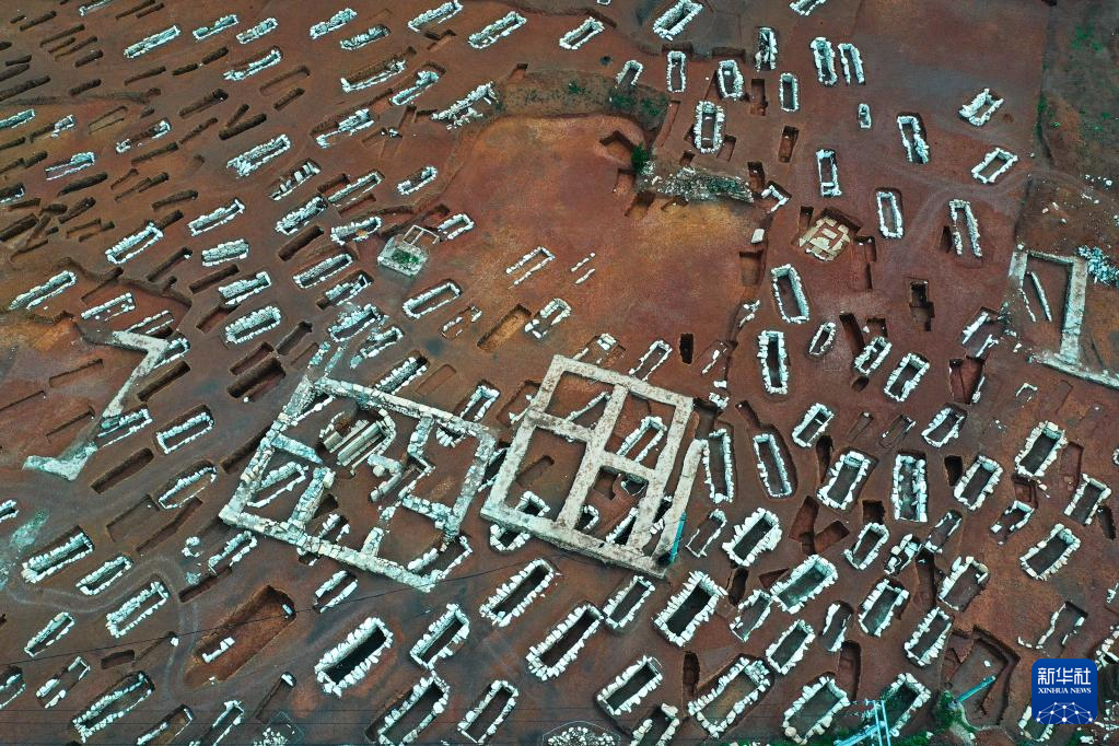 3月30日拍摄的贵州贵安新区大松山墓群挖掘现场(无人机照片)。