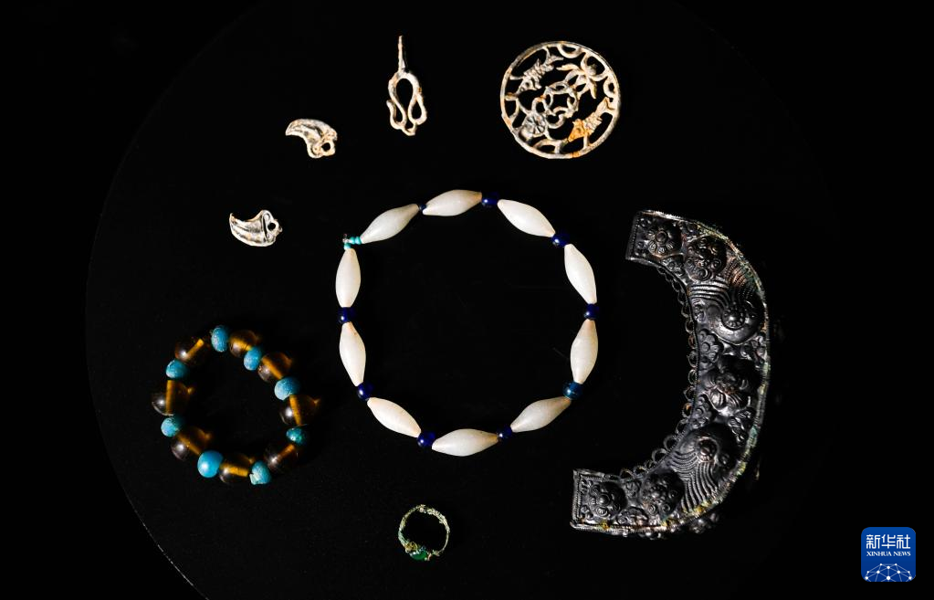 贵州贵安新区大松山墓群出土的精美装饰品(3月30日摄)。