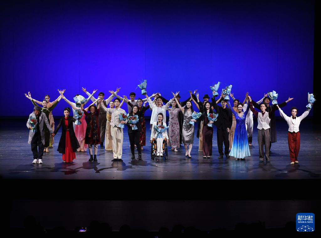 4月3日,演员在舞剧《蓝色裙摆》中表演。