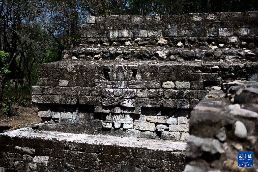 这是4月1日拍摄的洪都拉斯科潘玛雅古城遗址内的雕刻。