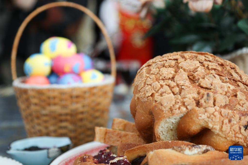 4月16日拍摄的当地群众为迎接巴斯克节准备的美食和彩蛋。