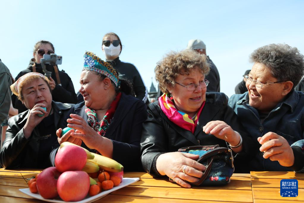 4月16日,俄罗斯族群众欢聚一堂,庆祝巴斯克节。
