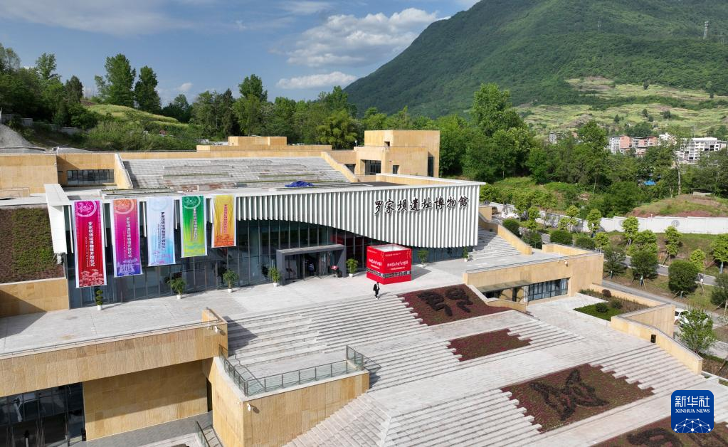 这是罗家坝遗址博物馆外景(4月26日摄,无人机照片)。