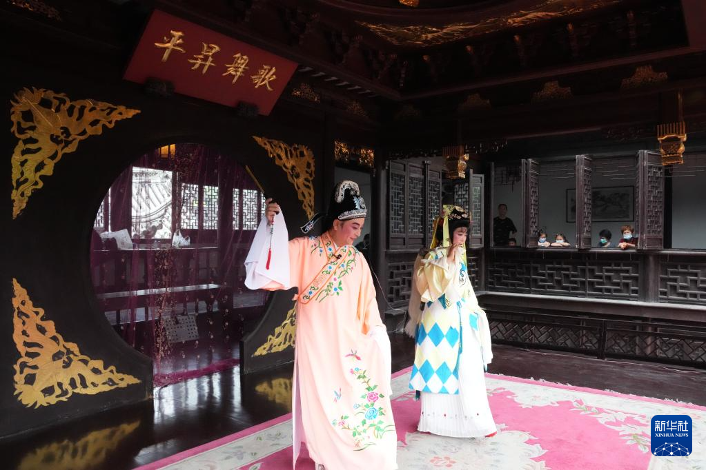 5月21日,在盛泽镇先蚕祠,演员在舞台上演出。