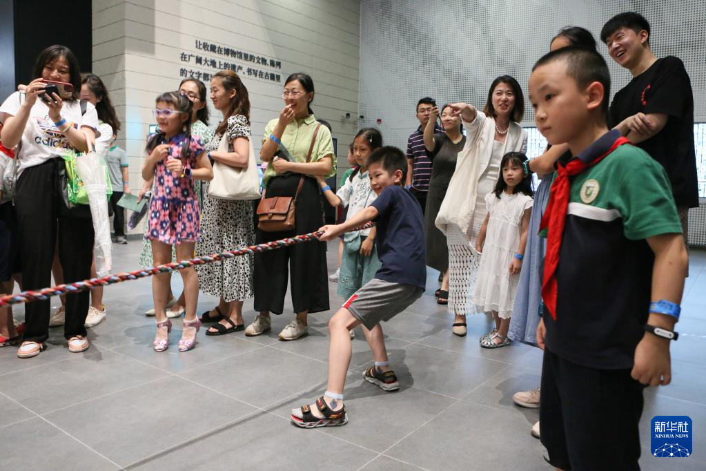 当日,为配合“漠北锋鸣——鄂尔多斯青铜器文物精品展”,助力城市夜经济发展,上海市闵行区博物馆开展夜间“那达慕”大会。参观者可以体验射箭、拔河,品尝特色美食,充分感受民俗风情的魅力。