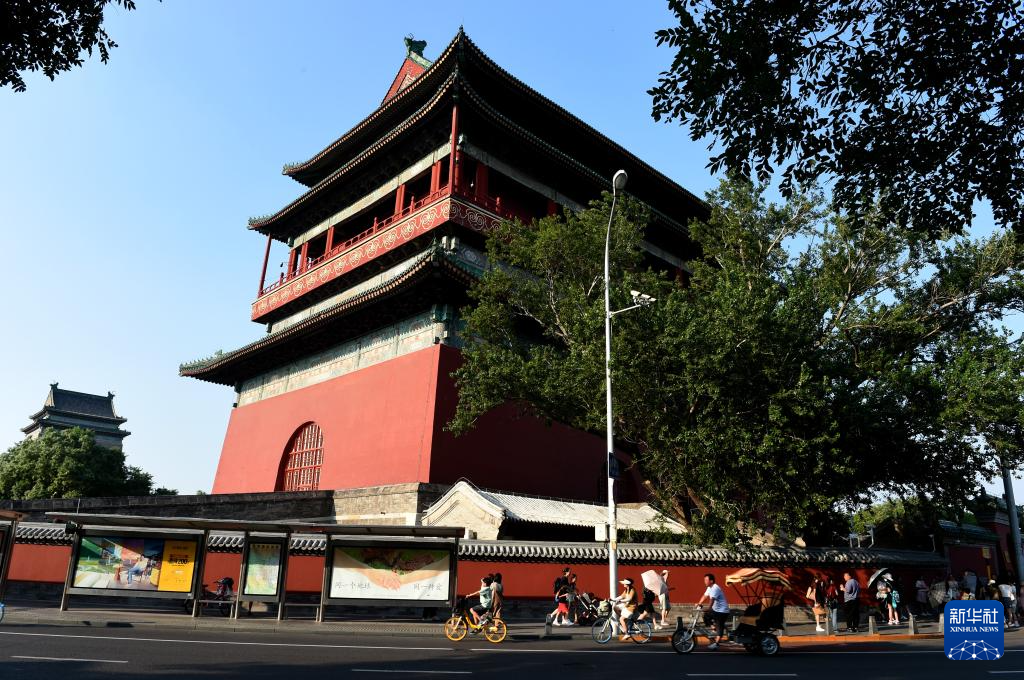 夏日北京钟鼓楼(7月17日摄)。钟鼓楼位于北京中轴线的最北端,两楼前后纵置,气势雄伟。作为元、明、清三代都城的报时中心,至今已有700多年的历史。