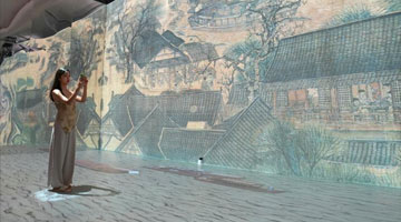 7月30日,一名游客在坡芽村坡芽传习馆内体验壮族织布。