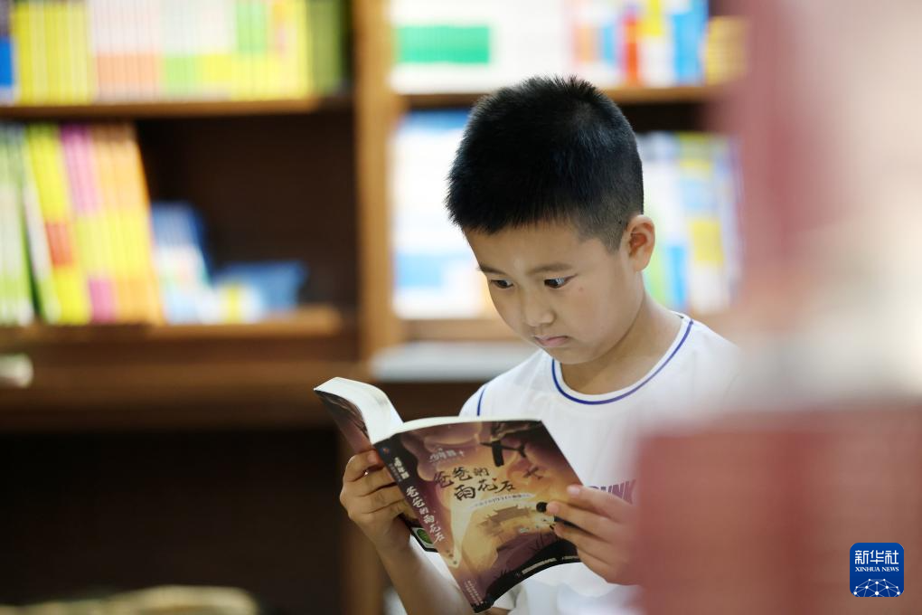 8月1日,在湖南省常宁市黄金书屋,一名小朋友在阅读。