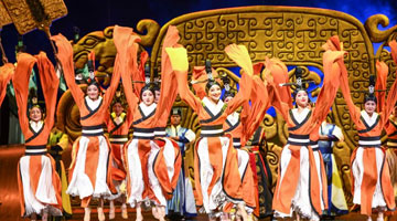 第六届中国新疆国际民族舞蹈节开幕式后,新疆艺术剧院歌舞团演员表演大型原创历史题材舞剧《张骞》(7月20日摄)。新华社记者 胡虎虎 摄