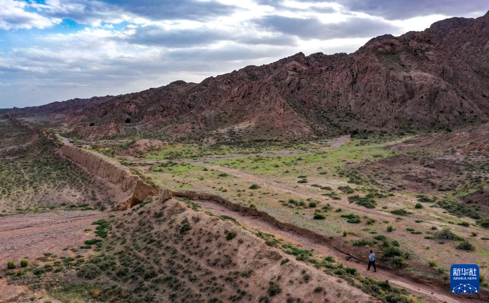 8月20日,董海宁徒步巡查贺兰山沿线的明长城永宁段(无人机照片)。
