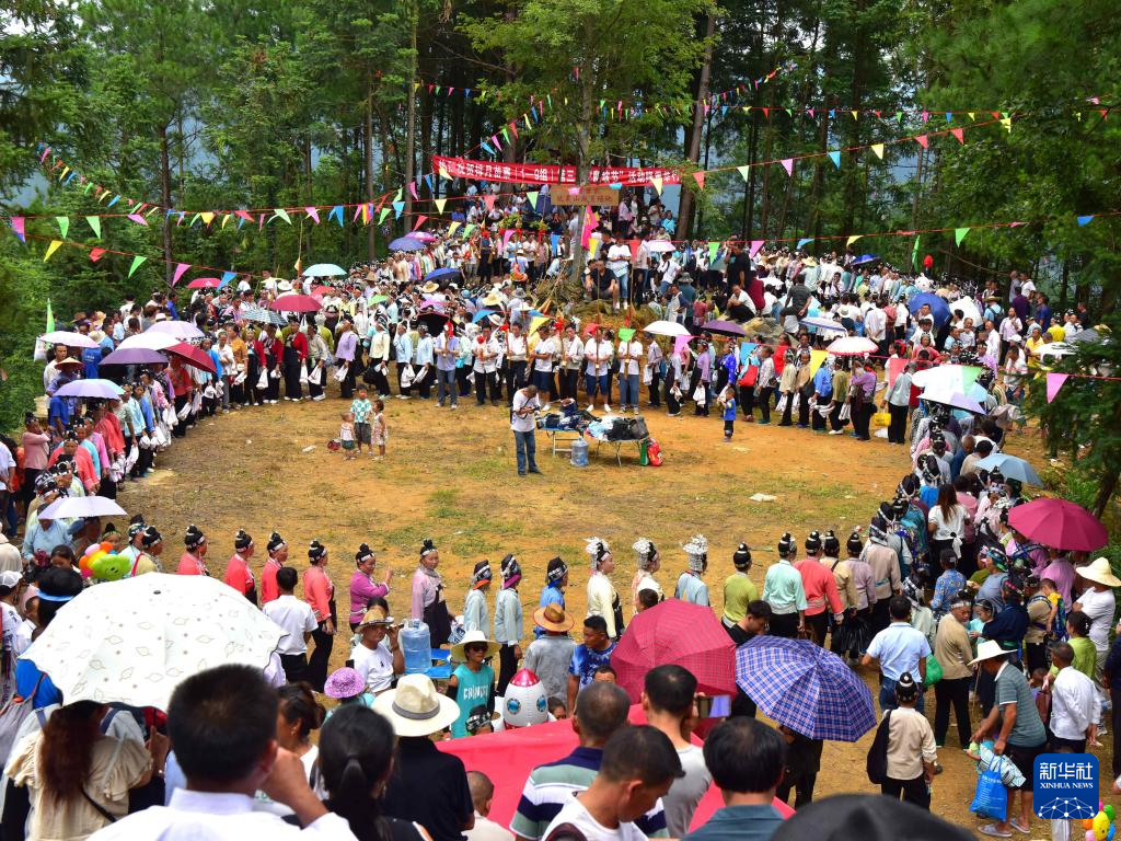 8月22日,苗族村民在“爬坡节”上唱苗歌。