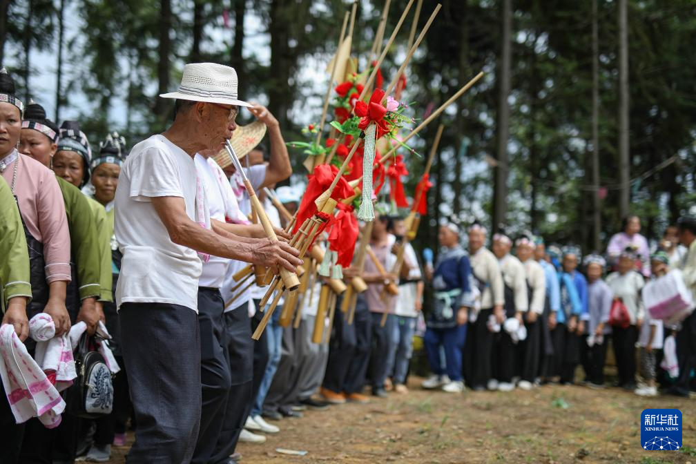 当日,贵州省黔南布依族苗族自治州三都水族自治县普安镇高硐村排月苗寨举办一年一度的传统“爬坡节”,来自周边村寨的苗族村民身着节日盛装,跳芦笙、唱山歌,以舞会友,以歌传情,欢度佳节。