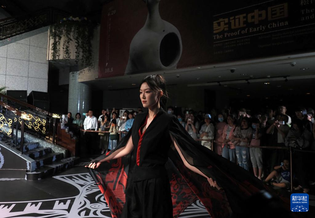 8月25日晚,模特在上博“研色·良渚之夜”综合艺术秀上展示时装。