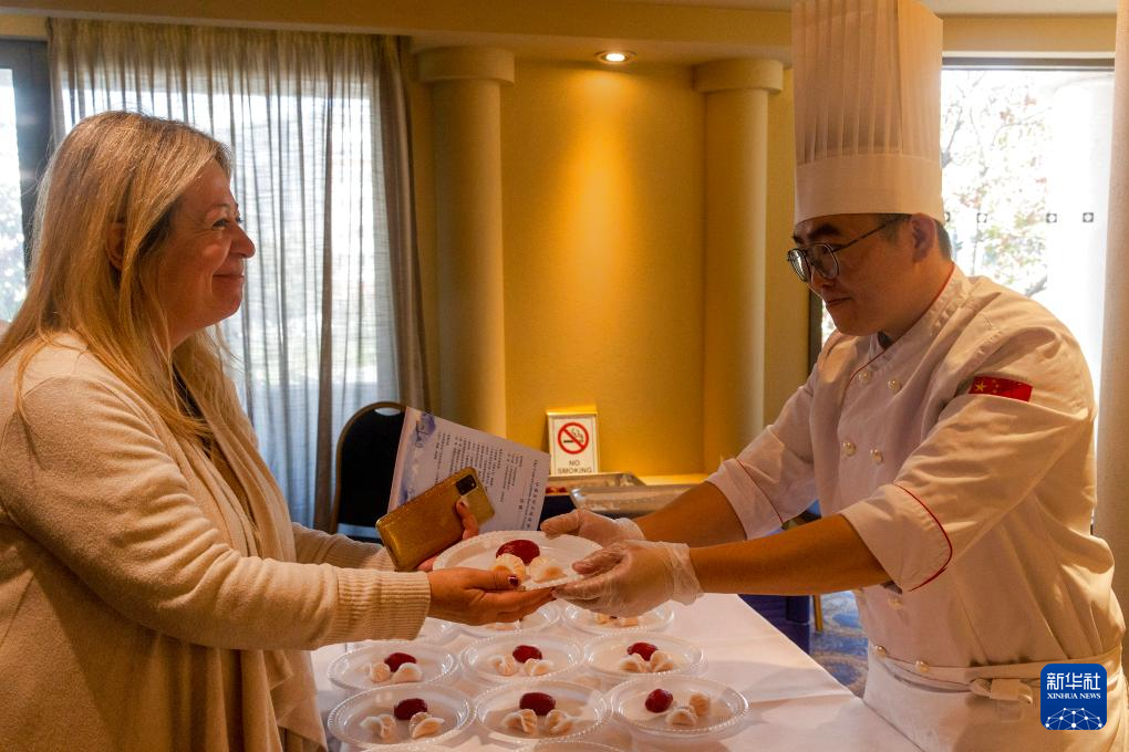 11月20日,在希腊雅典,嘉宾在广东“文化海外行”活动现场品鉴美食。