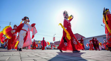 11月25日,工作人员在活动上为孩子们表演互动节目“真假美猴王”。