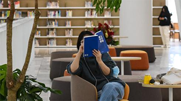 1月4日,在龙泉街道西白鱼潭社区,居民在社区书屋阅读。