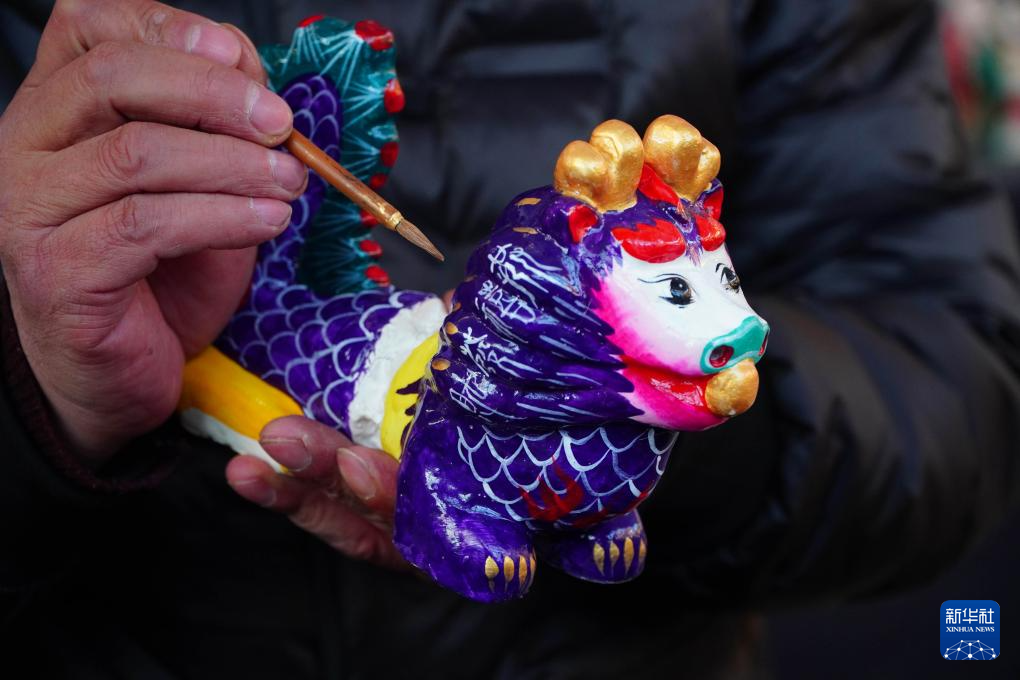 春节临近,在山东潍坊高密市姜庄镇聂家庄村,当地村民制作龙造型泥塑供应各地市场。聂家庄村有制作泥塑的悠久传统,2008年聂家庄泥塑被列为国家级非物质文化遗产。