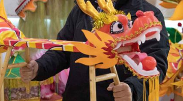 2月3日,在巴西累西腓,人们在中国春节庆祝活动上展示自己制作的龙头。