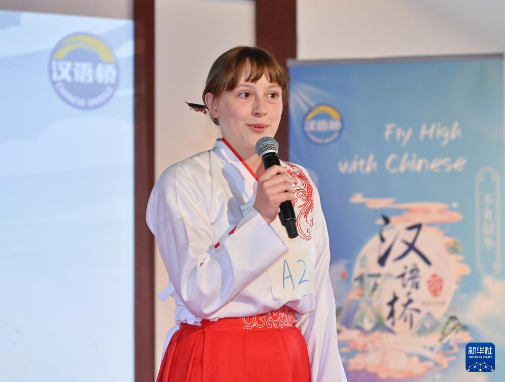 6月8日,在德国汉堡,选手在第十七届“汉语桥”世界中学生中文比赛暨第四届“汉语桥”世界小学生中文秀德国赛区决赛上进行演讲。