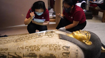 6月16日,小朋友在杭州桥西历史文化街区一处非遗体验点了解面塑制作技艺。