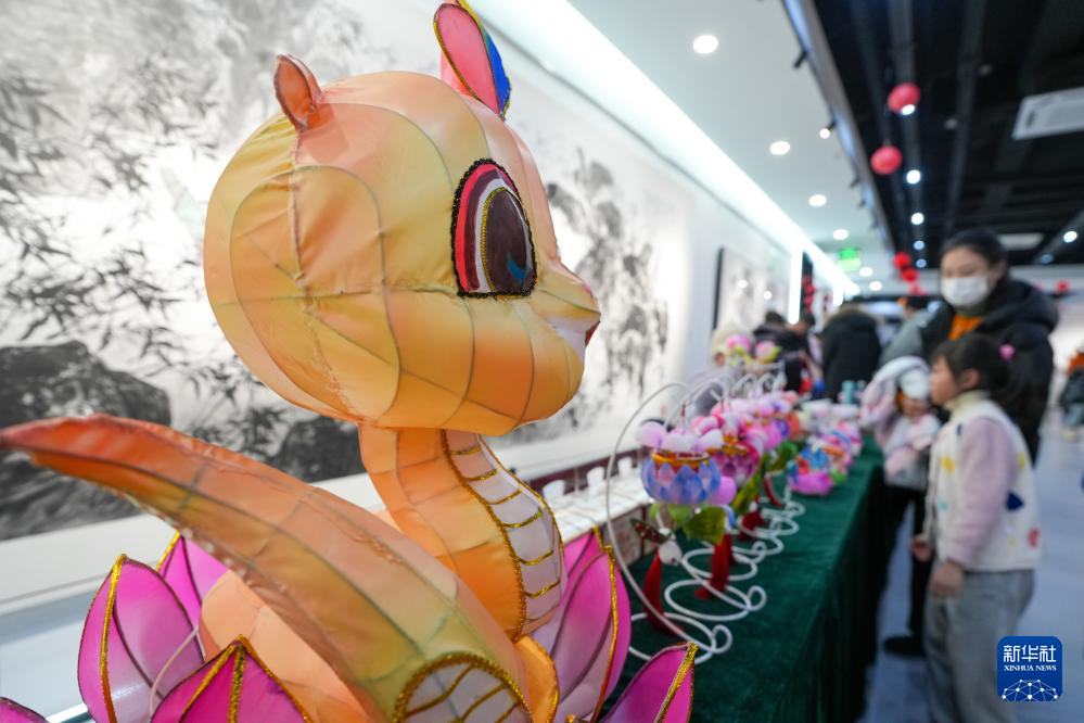 1月11日,市民们在活动中参观非遗项目秦淮灯彩。