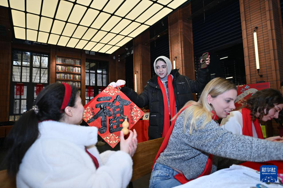 当日,天津外国语大学国际教育学院的50多名留学生参加“书香钟书阁·共赏中国年”来华留学生春节文化体验活动。留学生们在活动中体验特色民俗,感受中国春节的独特魅力。