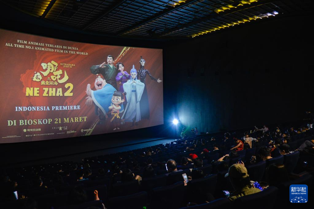 3月15日,在印度尼西亚雅加达,观众入场参加《哪吒之魔童闹海》首映。