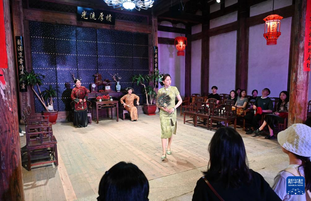 4月18日,演员在福州三坊七巷宫巷18号的古厝里表演庭院浸入式戏剧《雀起无声》。