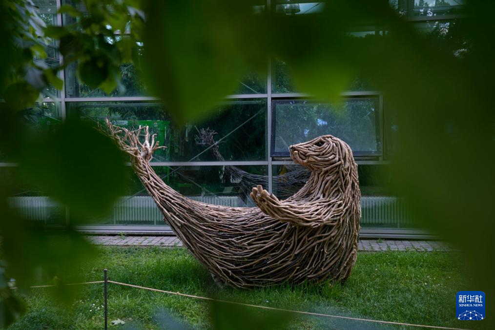 这是5月6日在波兰首都华沙拍摄的海豹树枝雕塑。