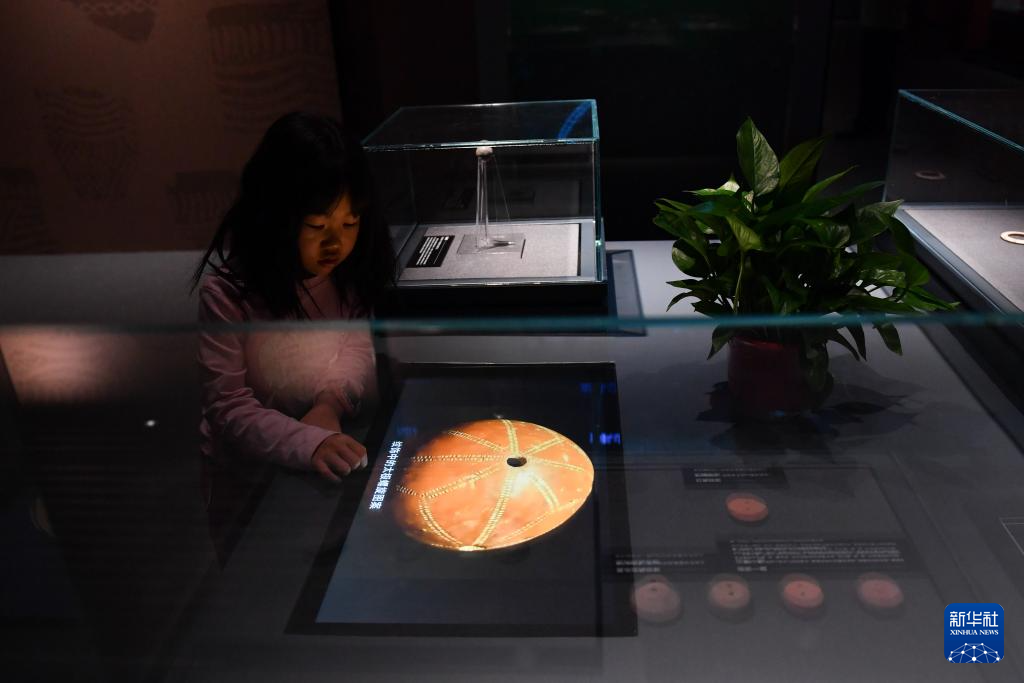 5月10日,小朋友在岳阳市博物馆观看展品介绍。