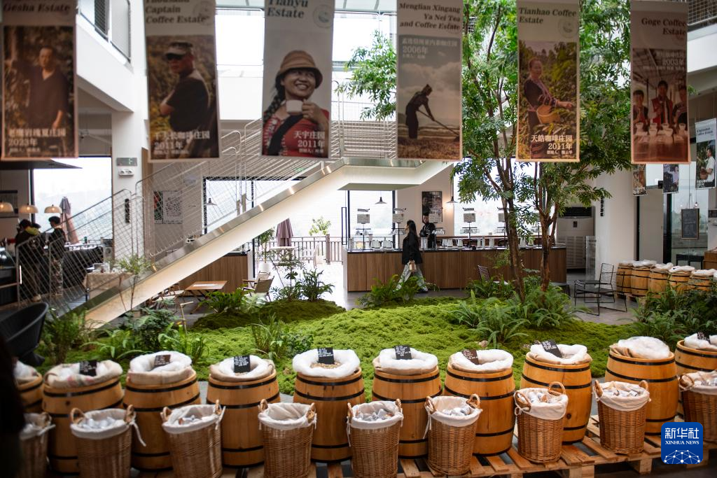 游客在位于云南省普洱市思茅区的“美丽星村 有风咖谷”咖啡体验中心游览(2025年1月8日摄)。